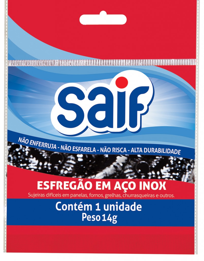 Finalidade: Esponja de Aço Saif foi desenvolvida para dar brilho em alumínio e similares, não risca alumínio e inox, não dissolve, seca rápido, não enferruja, não retém germes e sua validade é indeterminada.