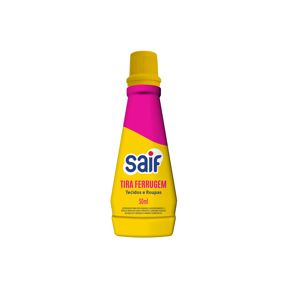 O Tira Ferrugem Saif é um produto com a finalidade de remover manchas de ferrugem em roupas e tecidos.