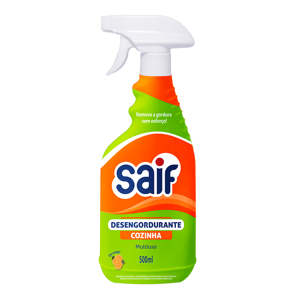 Desengordurante Multiuso Saif é um limpador de uso geral que remove as sujeiras mais difíceis de serem retiradas. Possui agentes de limpeza deixando um agradável perfume. Não contém cloro e pode ser utilizado diariamente em fogões, azulejos, pias, mármores, eletrodomésticos, churrasqueiras, depuradores de ar, superfícies plásticas engorduradas e móveis.