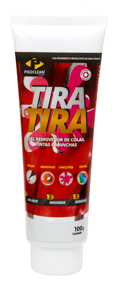 Tira Tira é um gel destinado à remoção de colas, tintas, manchas e sujeiras em geral. Pode ser usado em todos os tipos de superfícies, pois não as danifica. O produto é ideal para tirar também adesivos e chicletes.