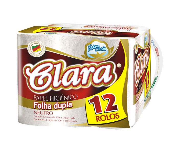 Papel Higiênico Folha Dupla 100% celulose super luxo 30 metros cada rolo, disponível em pacote com 12 unidades. Fardo com 6 pacotes.