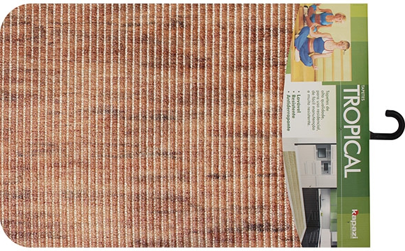 O Tropical é um produto inovador, moderno, prático e decorativo. Sua superfície é ondulada, de efeito massageador, de fácil limpeza e secagem rápida. Pode ser encontrado em mais de 40 estampas e cores, com motivos florais, infantis, geométricos entre muitos outros. O tapete Tropical é ideal para o uso em banheiros, cozinhas, salas, quartos de criança, clubes, praias, piscinas e muitas outras opções.