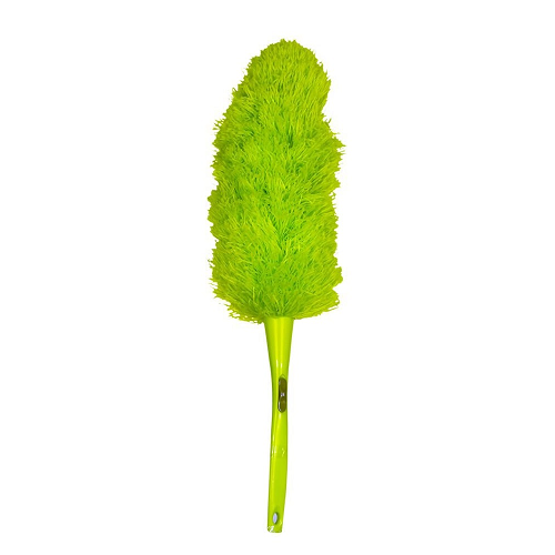 Espanador Soft de microfibra com haste flexível. Com ação eletrostática, retém o pó e não risca as superfícies.
